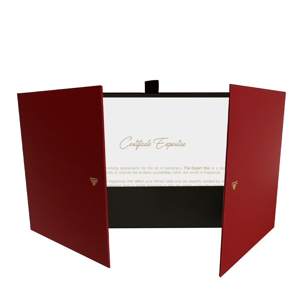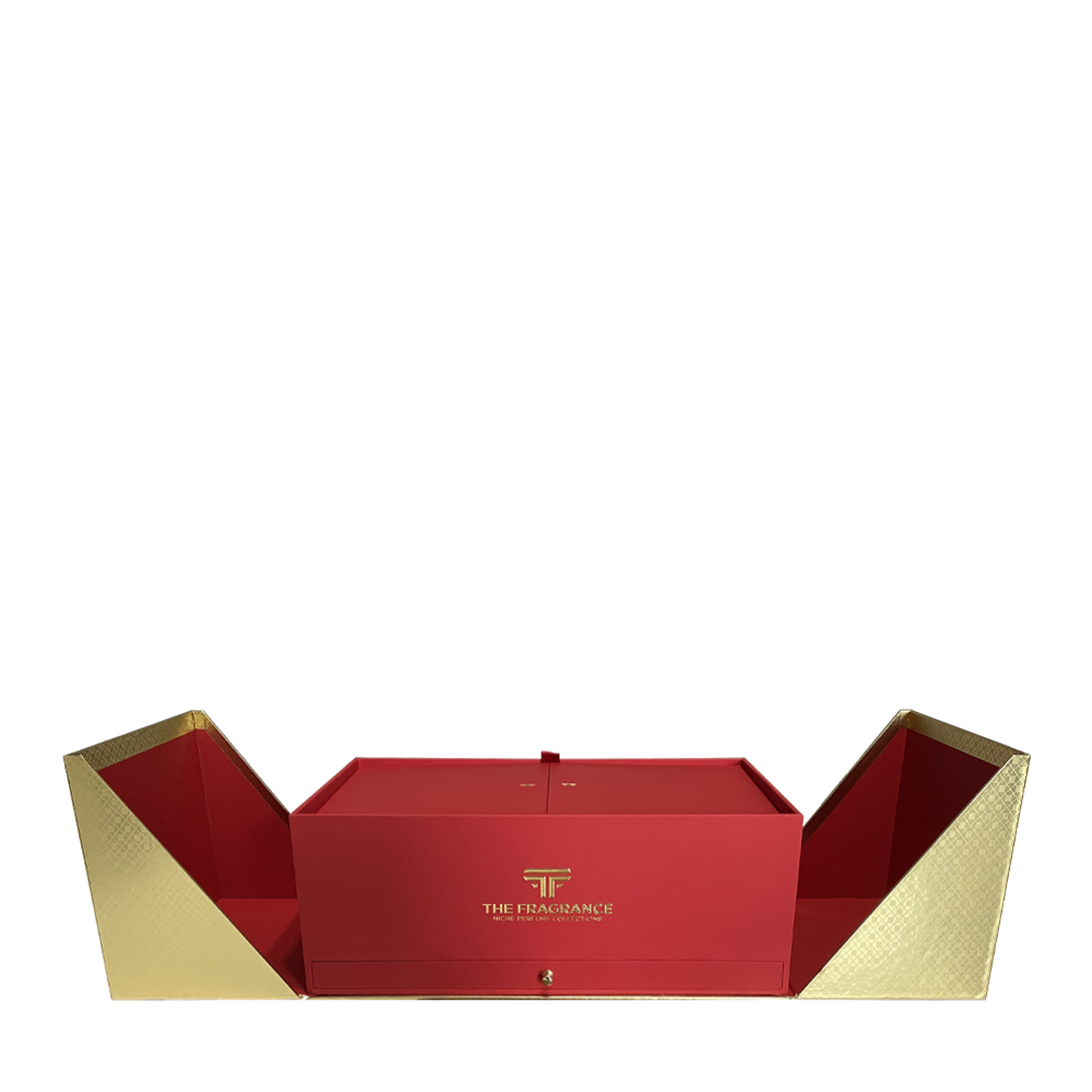 Its sculpted gold-and-red exterior protects a world of sensory artistry, inviting you to explore fragrances crafted from rare essences and masterful compositions.